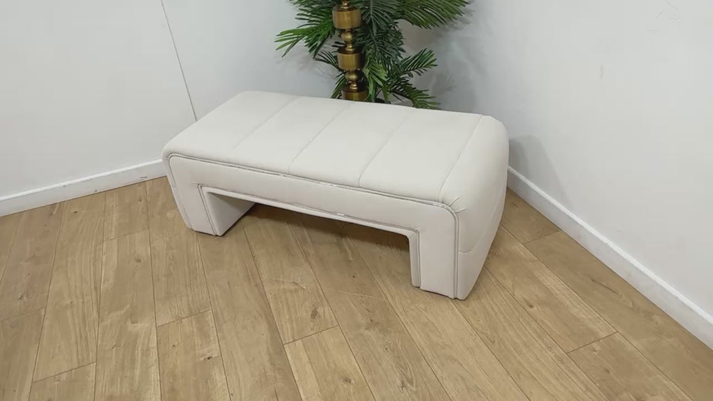 Sofology Oscar Fabric Small Bench Footstool Silver Trim in Super Matt Velvet Ecru