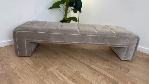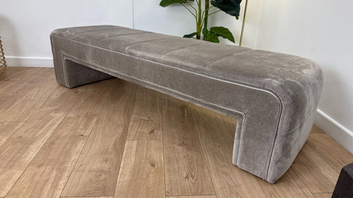 Original price £549Current price £299| /Sofology The Oscar Large Bench Footstool Silver Trim in Fine Textured Chenille Stone