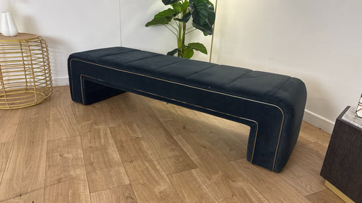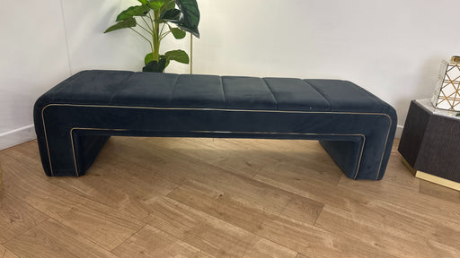 Original price £549Current price £299| /Sofology The Oscar Large Bench Footstool Gold Trim in Super Matt Velvet Charcoal