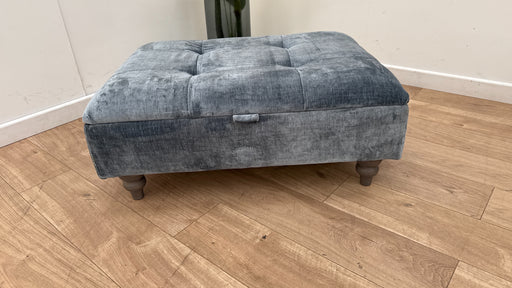Original price £499Current price £249| /Sofology Highgrove Fabric Storage Footstool in Luxe Chenille Steel Blue All Over