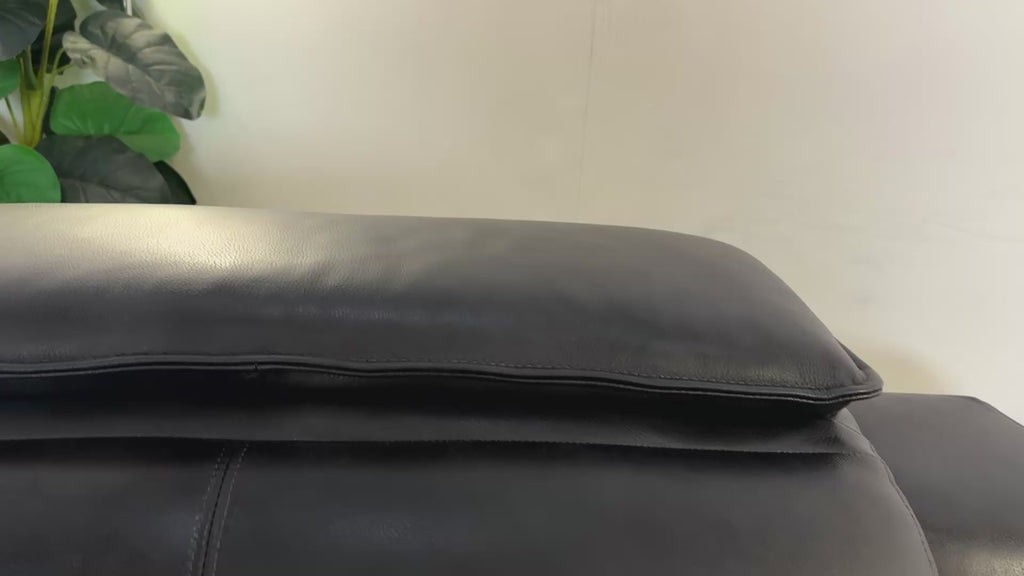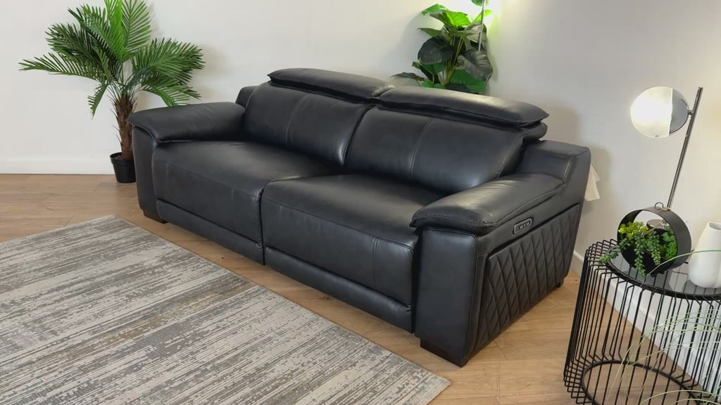 Sofology Benz Leather 3 Seater Power Recliner/Headrest in Trusty Sheen Navy