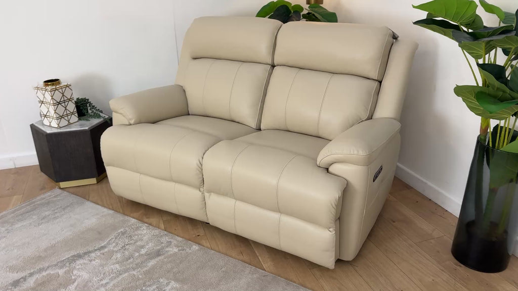 Sofology Gracie Leather 2 Seater Power Recliner/Headrest in Trusty Sheen Bone China