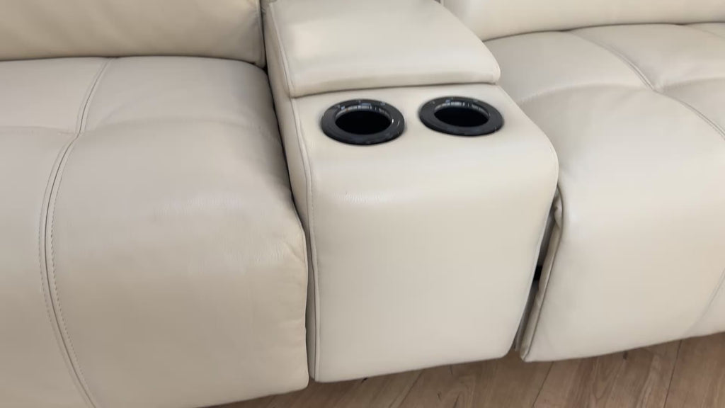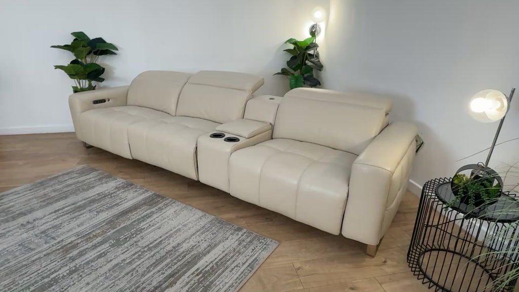 Sofology Marvella Leather 4 Seater Split + Console Recliner in Bone China