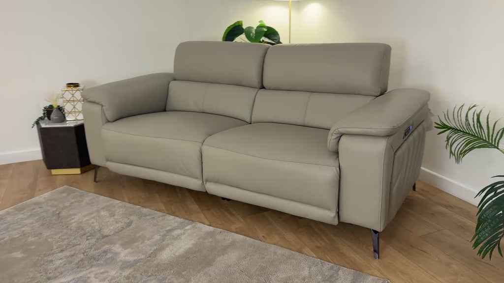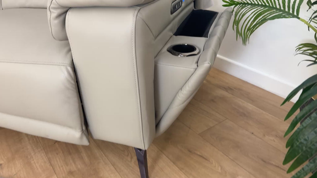 Sofology The Fratelli Leather 2.5 Seater Power Recliner/Headrest in Trusty Embossed Light Grey