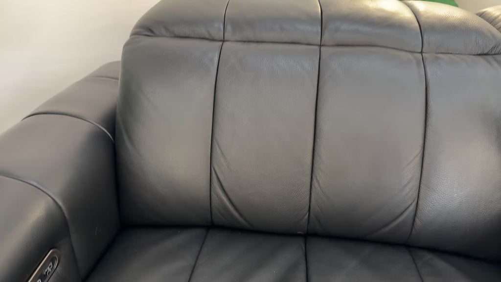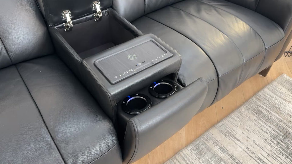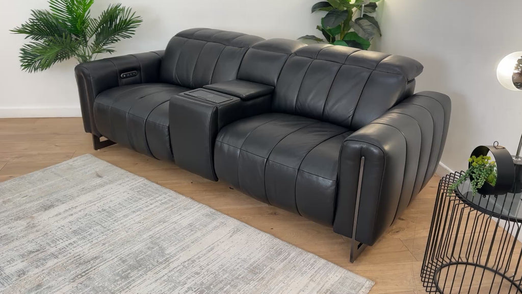 Sofology The Paramount Leather 2.5 Seater Console Power Recliner/Headrest Speakers in Trusty Embossed Jet Black