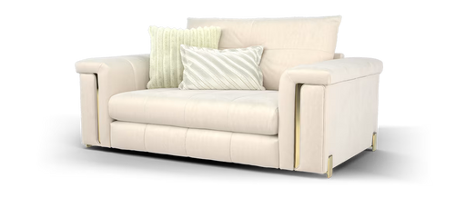 Original price £1,199Current price £499| /Sofology Oscar Fabric Loveseat Gold Trim in Super Matt Velvet Ecru Mix