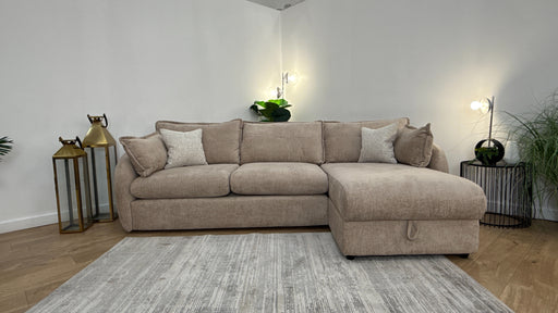 Original price £1,949Current price £1,349| /Sofology The Portobello Fabric 3 Seater Chaise Sofa Bed Foam Seats with Storage in Teddy Chenille Natural Mix