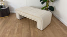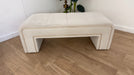 Sofology The Oscar Fabric Small Bench Footstool Gold Trim in Super Matt Velvet Ecru