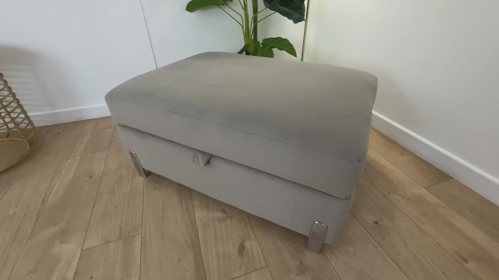 Sofology The Oscar Storage Footstool Silver Trim in Super Matt Velvet Pebble