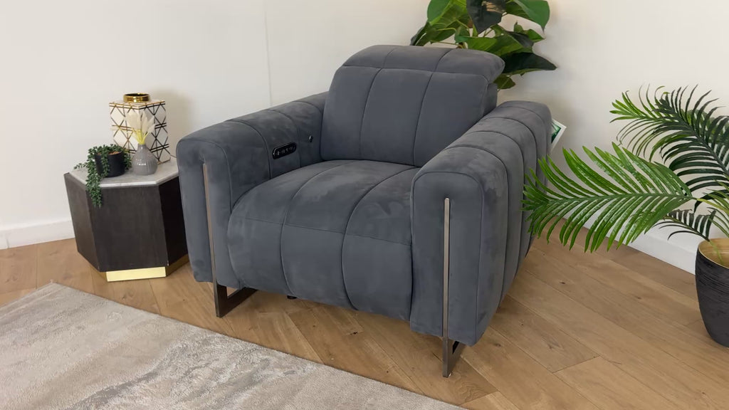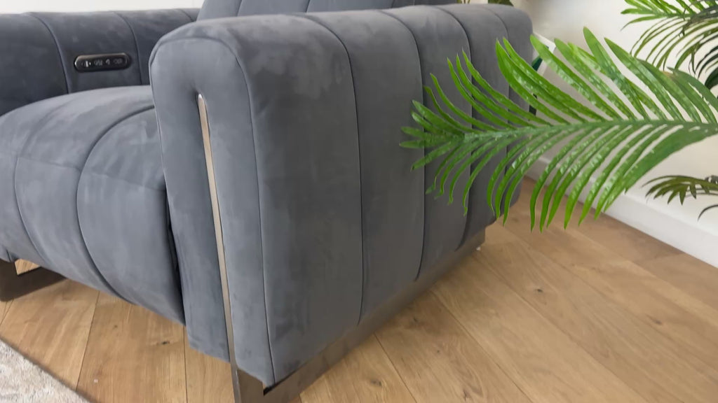 Sofology The Paramount Fabric Chair Power Recliner/Headrest Heated Seat Speakers in Lifestyle Nubuck Feel Charcoal