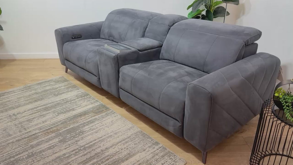Sofology Allure Fabric 2.5 Seater Screen Console Power Recliner/Headrest Heated Seats Lumbar Speakers in Lifestyle Nubuck Feel Charcoal