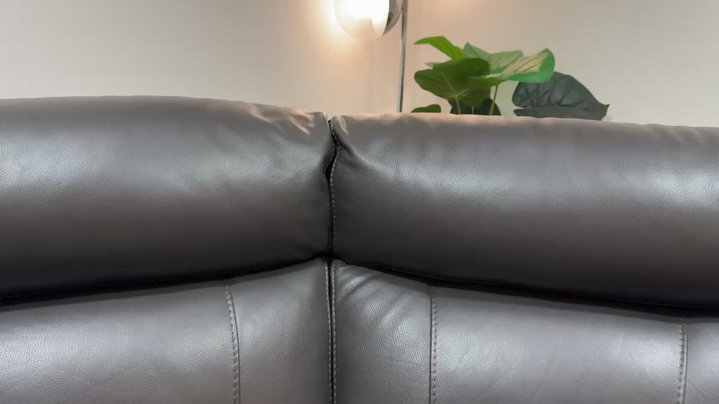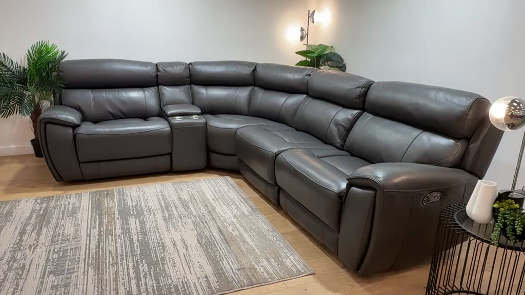 Sofology Radleigh Leather 1.5 Corner 2.5 Console Triple Power Recliner/Headrest in Trusty Soft Sheen Charcoal