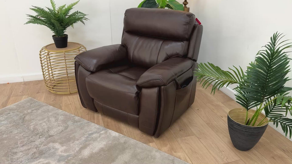 Sofology Radleigh Leather Lift & Rise Chair in Relaxed Embossed Dark Brown