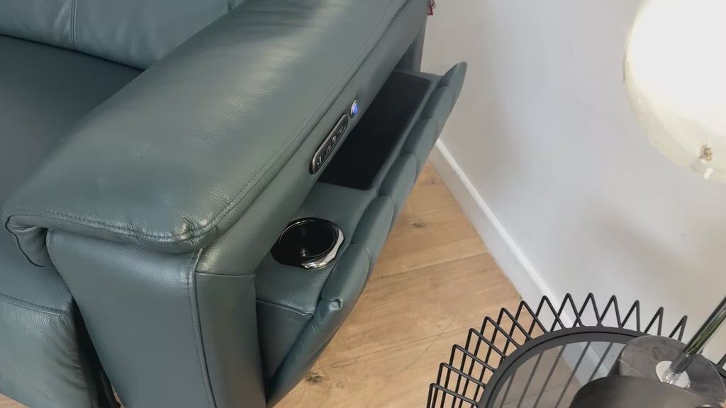 Sofology The Fratelli Leather 2.5 Seater Power Recliner/Headrest in Trusty Embossed Peacock