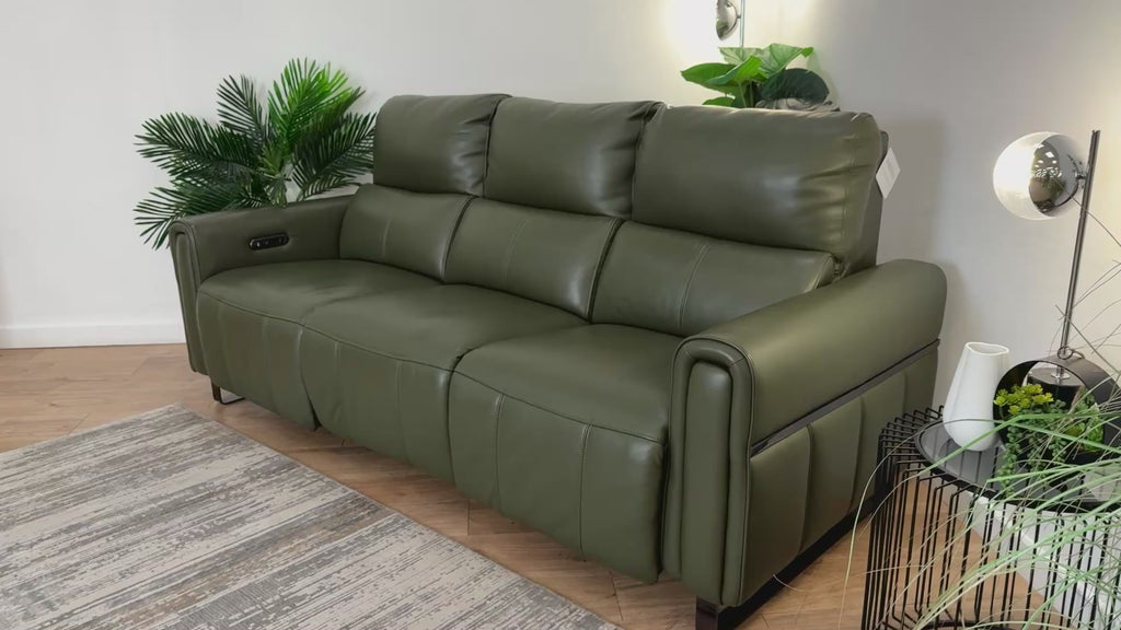 Sofology The Ravello Leather 3 Seater Power Recliner in Trusty Embossed Dark Olive